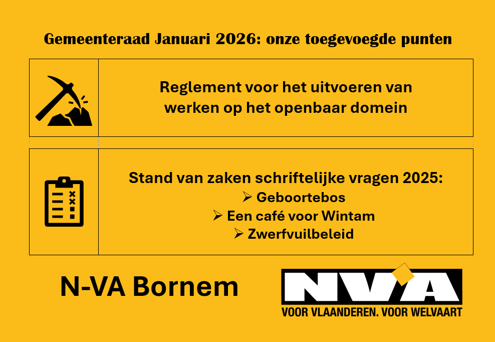 Tijdens de gemeenteraad van 13 januari 2026 heeft onze fractie 2 punten laten toevoegen op de agenda: